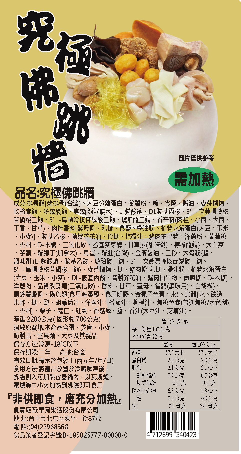 ◆選用排骨酥、豬腳丁、紅棗、偽魚翅、芋頭、鳥蛋、蒜仁、大白菜、栗子、豬肚、香菇絲等數十種海陸食材..
