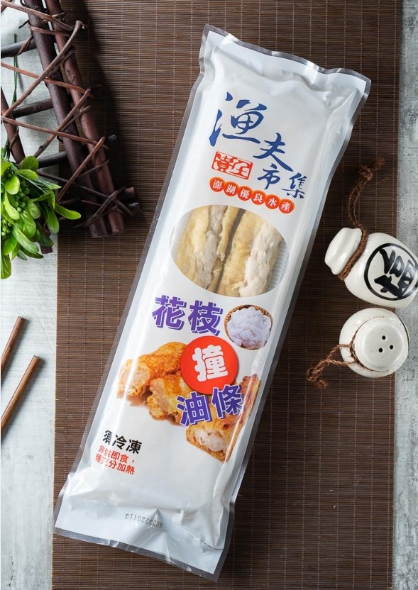 品名:花枝撞油條300g/包成分:花枝、魚漿(魚肉、糖、磷酸鈉、蛋白粉)、花枝、油條(麵粉、棕櫚油、碳酸氫銨、食鹽、碳酸氫鈉、燒銨明礬)、豬背脂(台灣)、馬鈴薯澱粉、地瓜粉、砂糖、蛋白、食鹽、白胡椒、海藻糖、L-麩酸鈉、胺基乙酸、酵母抽出物、多磷酸鈉、焦磷酸鈉